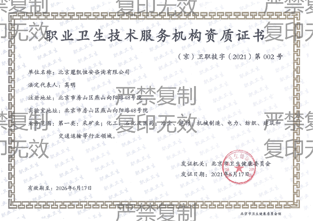 职业卫生技术服务机构资质证书