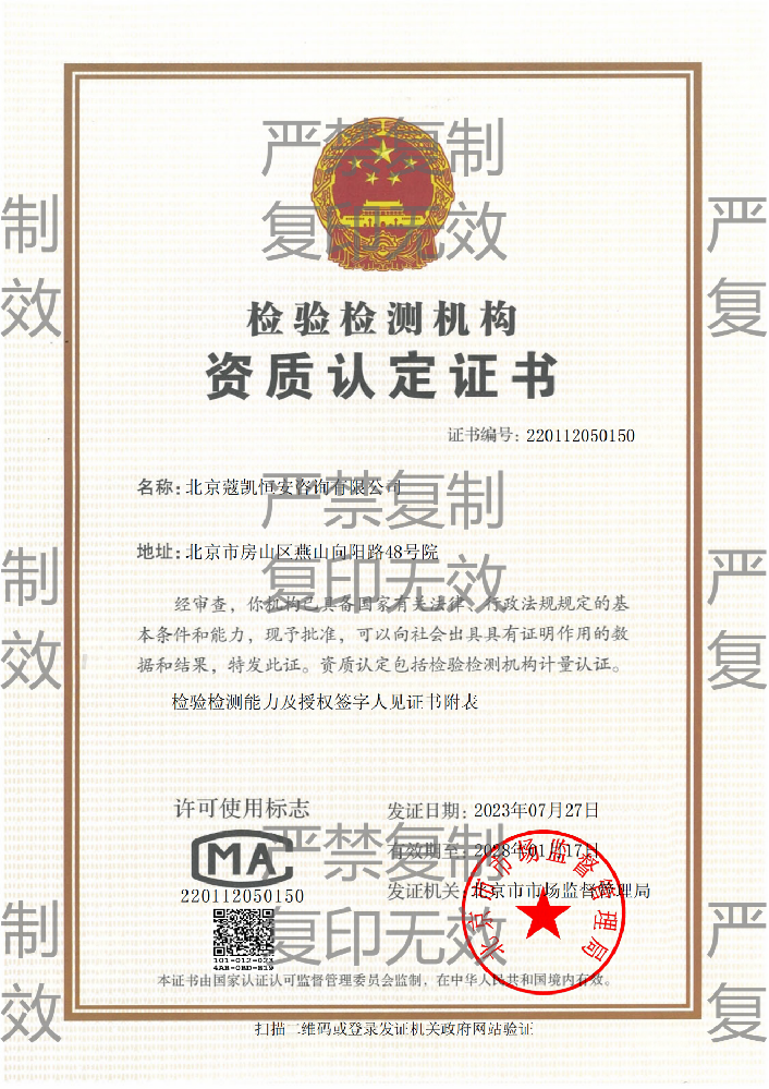 检验检测机构资质认定证书