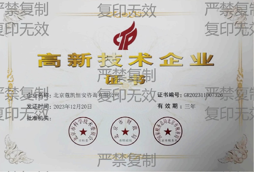 高新技术企业证书