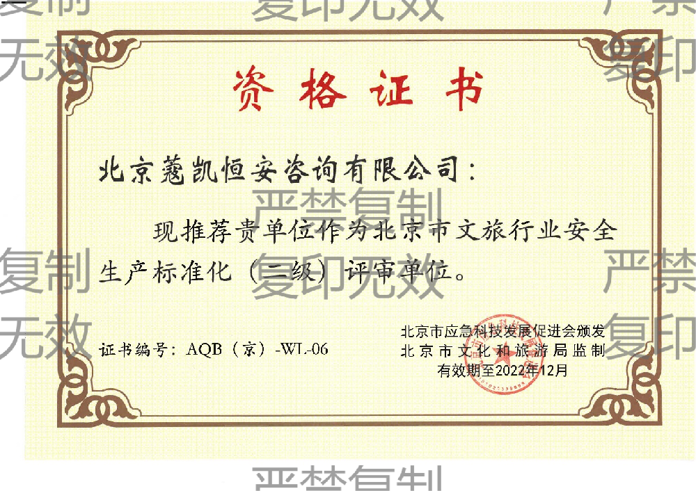 北京市文旅行业安全生产标准化二级评审单位资质