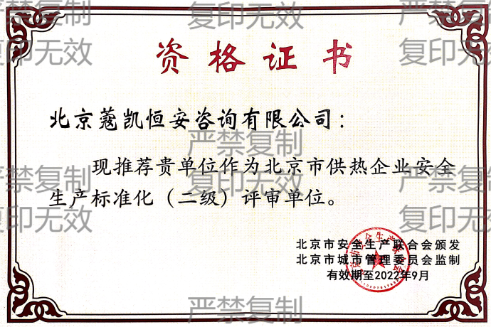 北京市供热企业安全生产标准化二级评审单位资质