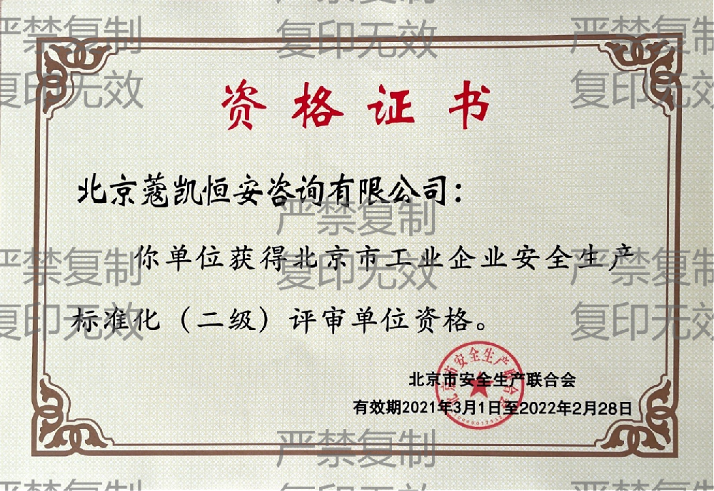 北京市工业企业安全生产标准化二级评审单位资质
