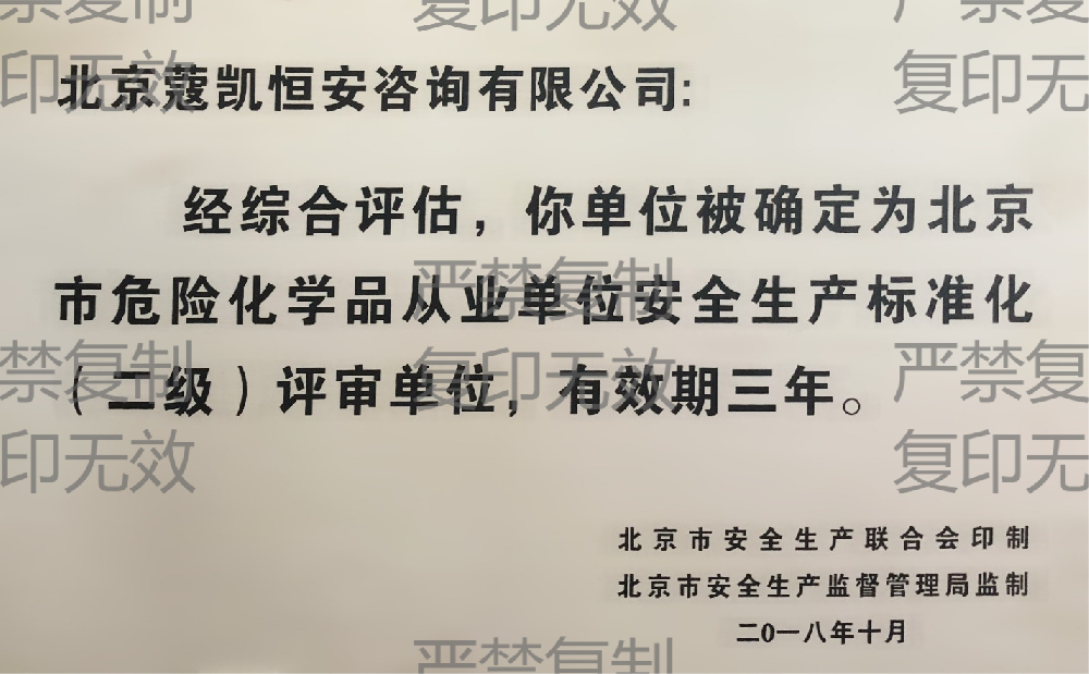 北京市危险化学品从业单位安全标准化二级评审单位资质